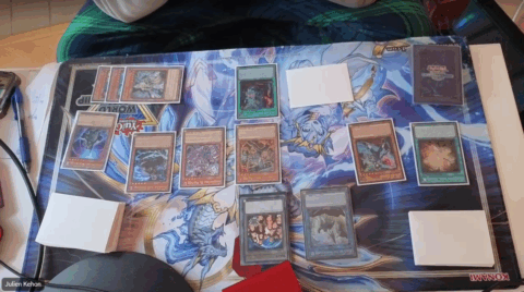 Kotton started off the Match by activating Ketu Dracotail to add Dracotail Lukias from his Deck to his hand. He Normal Summoned it and used its effect to add Dracotail Faimena from his Deck to his hand. He activated its effect by discarding it and fused Mulcharmy Fuwalos and Dracotail Lukias from his hand to Fusion Summon Dracotail Arthalion. He activated Arthalion’s effect to return the Lukias and Faimena in his Graveyard to his hand and used the effect of the Lukias to Set Rahu Dracotail from his Deck. He flipped Rahu and fused Faimena from his hand with Dracotail Urgula from his Deck to Summon Dracotail Gulamel. He used the effects of Urgula and Faimena to Set Dracotail Flame and Dracotail Sting from his Deck. Next, he activated the effect of Urgula in his Graveyard, returning it to his Deck to add Faimena from his Graveyard to his hand. He Set a card to his back row and then ended his turn.