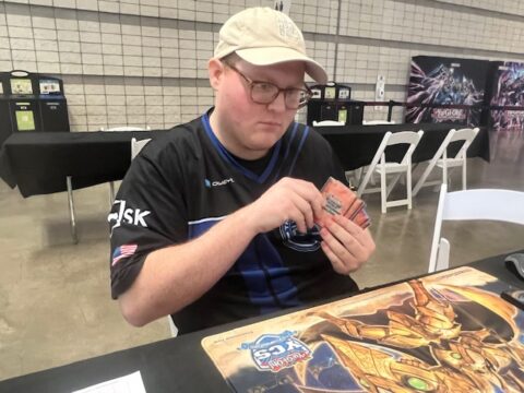 Mitsurugi Yummy Decks and Dracotail Decks took 7 of the 8 spots in the Top 8. Now, this Top 8 Feature Match pits these two Decks against one another. Lucas Sacco from Tulsa, Oklahoma entrusted his Mitsurugi Yummy Deck to win him a YCS trophy this weekend, while Muhtasim Mallick from Long Island, New York put his faith in the Branded Dracotail strategy. These two Duelists just played against one another in the final Swiss Round of the tournament. Lucas Sacco had an 11-2 record and Muhtasim Mallick had a 12-1 record when they got paired up – and by defeating Mallick in the final Swiss Round, Sacco secured his seat at this table. Now, they’re Dueling again in a Match that will eliminate one of these Duelists. It’s time to Duel!
