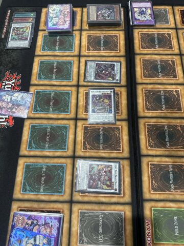 Strom opened with Dracotail Pan, D.D. Crow, Dracotail Mululu, Rahu Dracotail, and Gameciel the Sea Turtle Kaiju. He began by activating Rahu Dracotail, using Dracotail Urgula from his Deck and Dracotail Pan from hand to Fusion Summon Dracotail Arthalion! He returned Pan to hand, then Set Dracotail Flame and Ketu Dracotail to his backrow. Next, he activated Ketu, searching for Dracotail Lukias, then Normal Summoned Lukias to search for Dracotail Faimena. He activated the effect of Dracotail Faimena, using Dracotail Mululu from hand and Lukias from the field to Fusion Summon Secreterion Dragon, then Set Dracotail Sting and Dracotail Horn to his backrow. Finally, he activated Urgula’s effect, adding Dracotail Faimena back to hand, then used Secreterion’s effect to Special Summon back Mululu, and ended his turn.