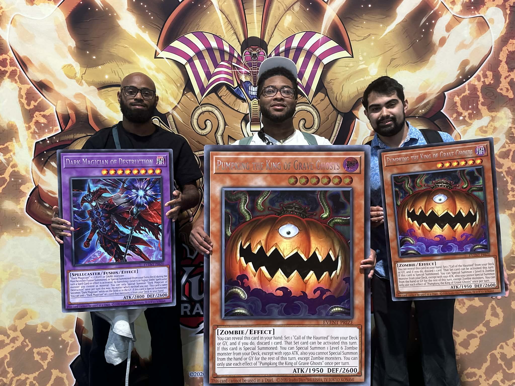 In 1st place, we have Marquise Lamont Whitaker Smith, who will be taking home a GIANT Pumpking the King of Grave Ghosts! In 2nd place is Shannon Sean Long Baxter, who receives an oversized Dark Magician of Destruction! And in third place, we have Nikolas Antonio Rincon, with an oversized Pumpking the King of Grave Ghosts!