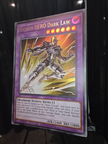 The winner of this event will take home a GIANTÂ Masked HERO Dark Law, with the new art from Maze of Muertos! Regular Dark Law is 70 points in Genesys, so this GIANT one must be worth 700!